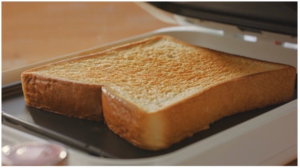 abien BREAD GRILLは、ヒーター内蔵プレートとパンの表面を密着させる構造のため、庫内温度と食パン内部の温度差も抑え、熱効率をアップしています。焼き過ぎを防ぐことで、水分をとじ込めた状態で焼き上げることを可能にしました。