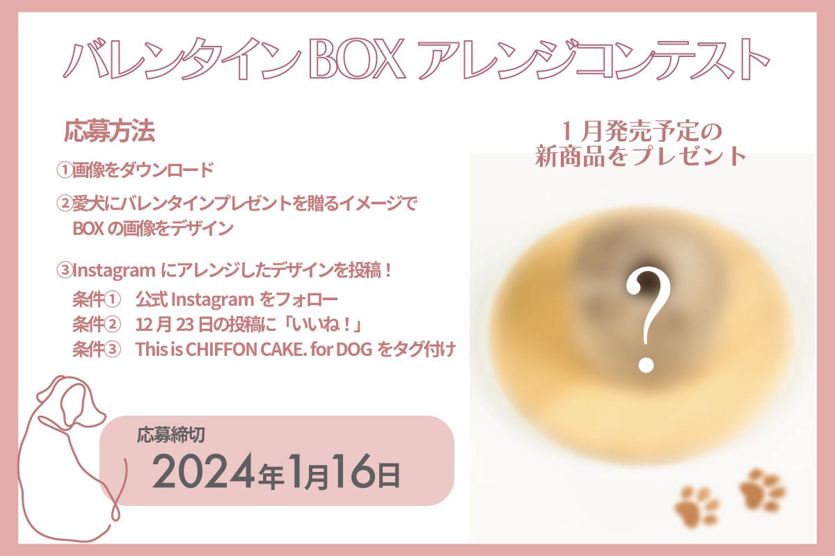 本日12月23日(土)より、This is CHIFFON CAKE. for DOGの「バレンタインBOXアレンジコンテスト」を開催いたします。