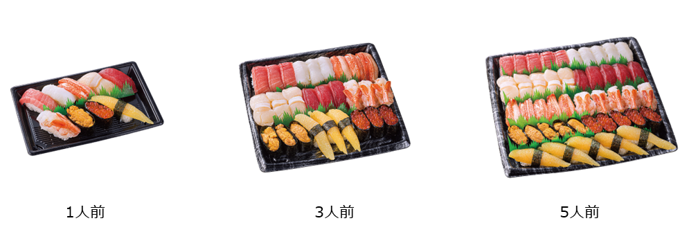 「冬の特別セット」は、縁起の良い食材である「大赤えび」や「かずのこ」、さらに「愛媛県産本鮪中とろ」や「北海道産特大ほたて」、「本ずわいがに」、「三陸産うに」、「大粒いくら」など、豪華ネタ9種を取り揃えた特別セットです。個食需要に対応した「おひとり様用(1人前)」から家族みんなでお楽しみいただける45貫入りの「5人前」まで、ライフスタイルに合わせてお楽しみください。