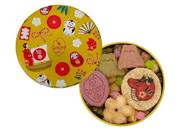 キュートな「辰せんべい」「富士山」「梅ざらめ」など、迎春らしさを限定缶に詰め込みました。
