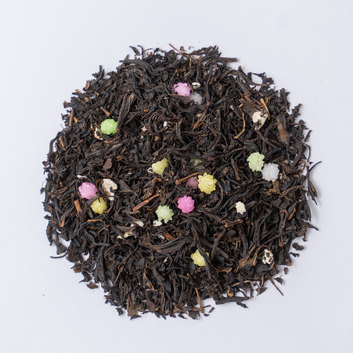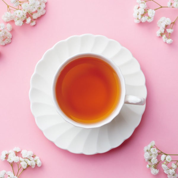 こだわりの上質の国産紅茶に桃のフルーティーな香りと華やかな金平糖を配合、早春の訪れを感じさせる優しい味のフレーバードティー