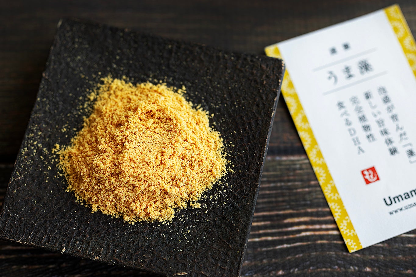 捨てられている泡盛粕を主原料にして育てた、旨味とDHAが豊富な美味しい藻です。一般的に藻は、豊富な健康成分を含有しても、匂いや味をマスキングしないと食用には向きません。しかし、うま藻はカラスミのような濃厚な旨味と香りが特徴で、新しい美味しさと持続可能性を表現できる食材として、既に高価格帯のレストランで活用が始まっています。