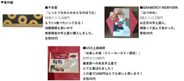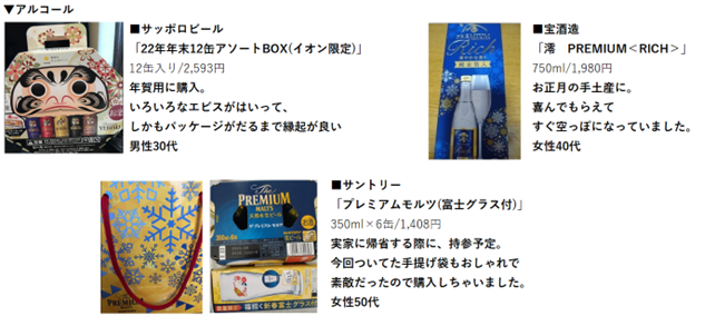 では、具体的にどのような商品を選ぶと喜ばれそうか、1年前の年末年始の購買データから購入されていた商品の一部をご紹介します。