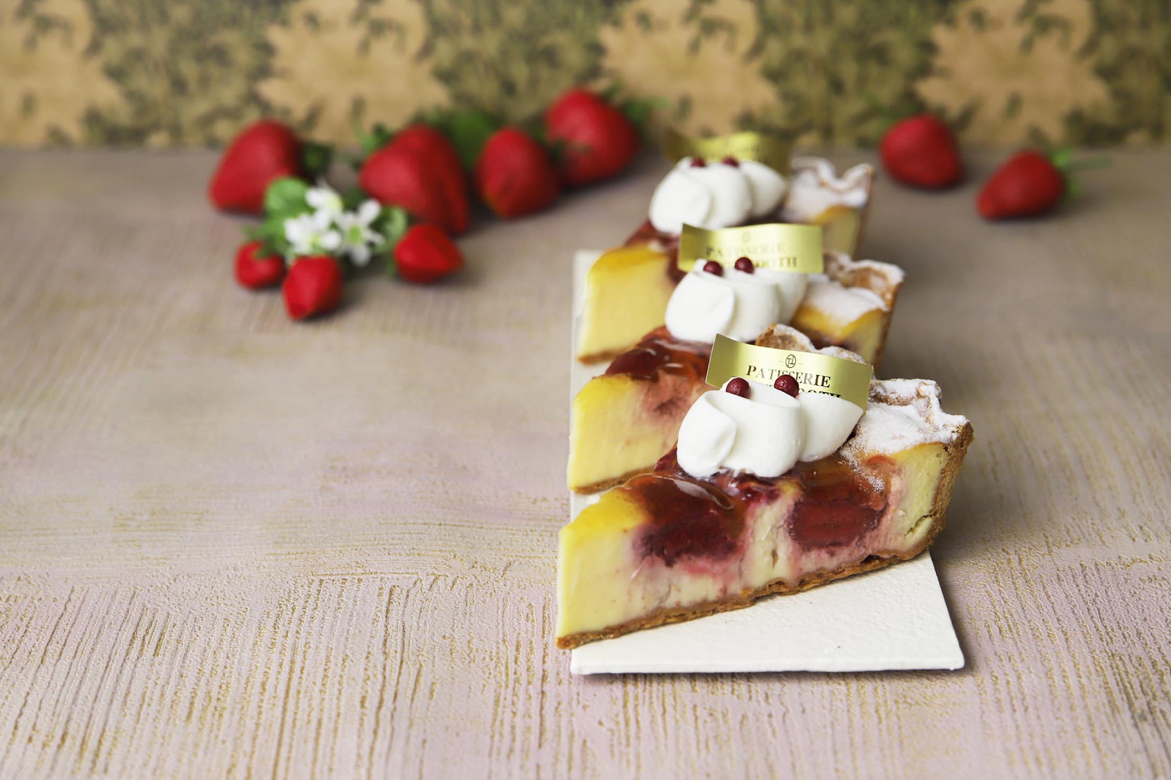 真っ赤に実った甘いイチゴを、香ばしく焼き上げたタルトやアーモンドクリームにあわせました。
