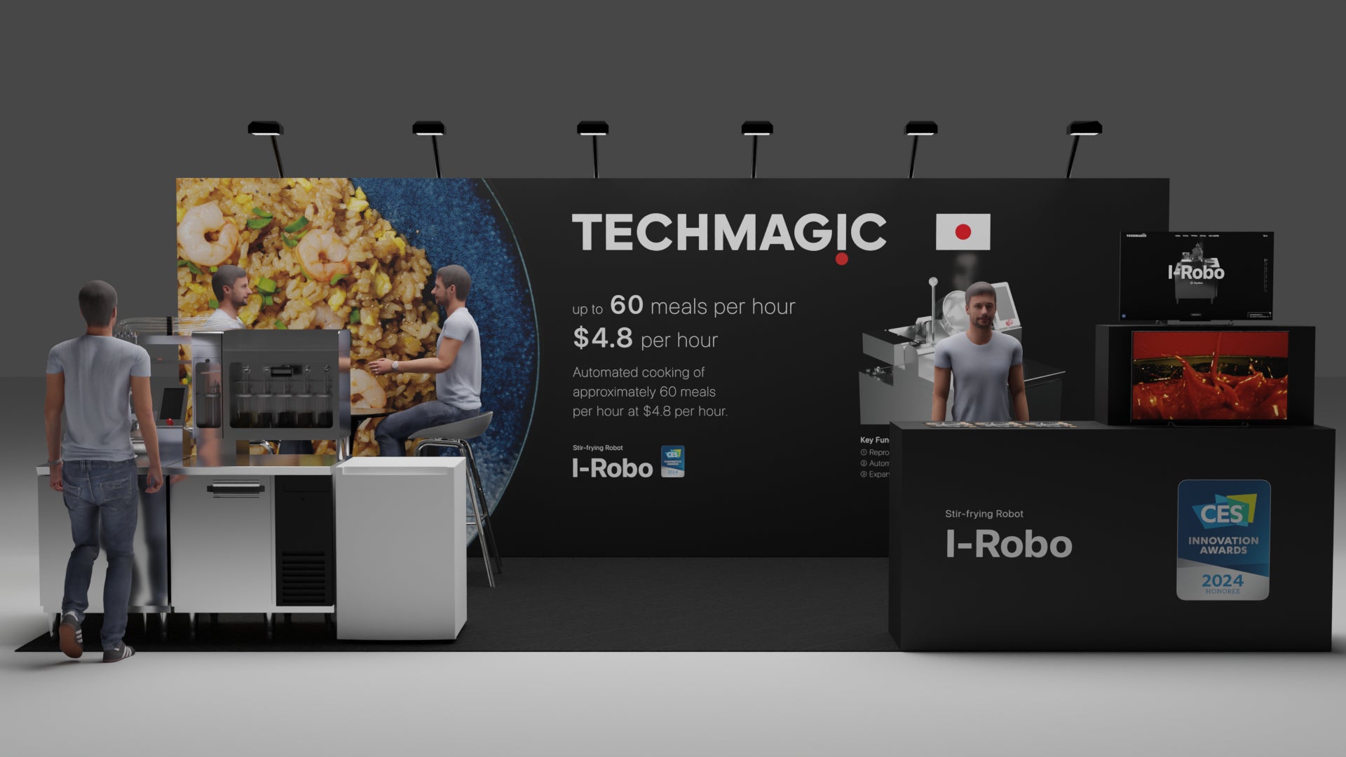 TechMagicは“世界のおいしいを、進化させるパートナー”という新しいビジョンのもと、2024年CESのVenetian Expo FOODTECHゾーン、JETROジャパンパビリオン(Eureka Park)とInnovation Awards 受賞者展示ブースの3箇所のブースに出展いたします。FOODTECHゾーンの自社ブースではI-Roboの実機を展示し、調理デモンストレーションを行う予定です。