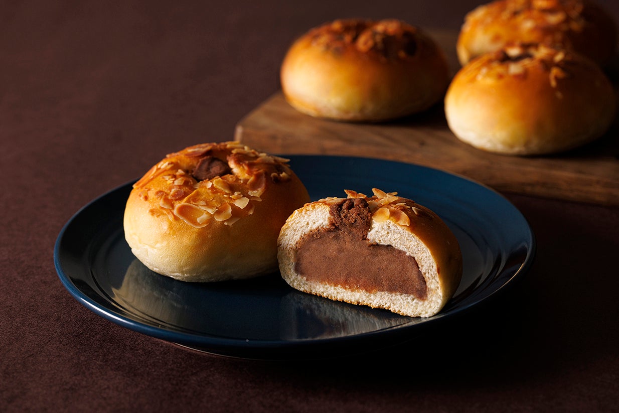 香り高い酒種生地に生チョコ餡を包み中心に生チョコ餡を絞りアーモンドを付けました。