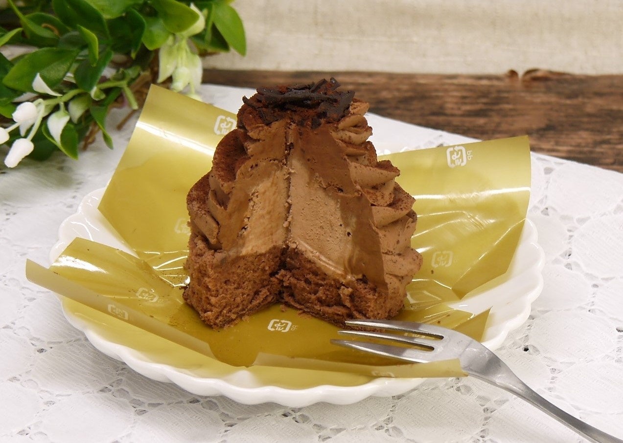 ベルギーチョコガナッシュを混ぜ込んだ濃厚なチョコクリームと、たっぷりのラム酒を入れたクリームの、2種類のクリームで仕立てた大人向けチョコモンブランです。トッピングの削りチョコと合わせ、豊かなチョコの風味が広がるひと品です。