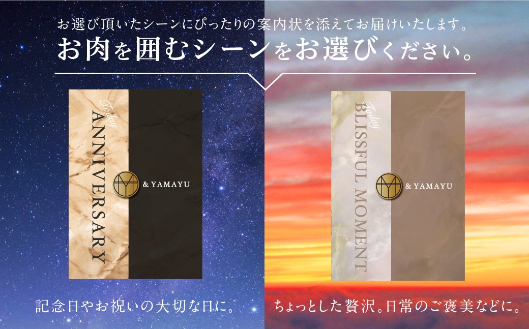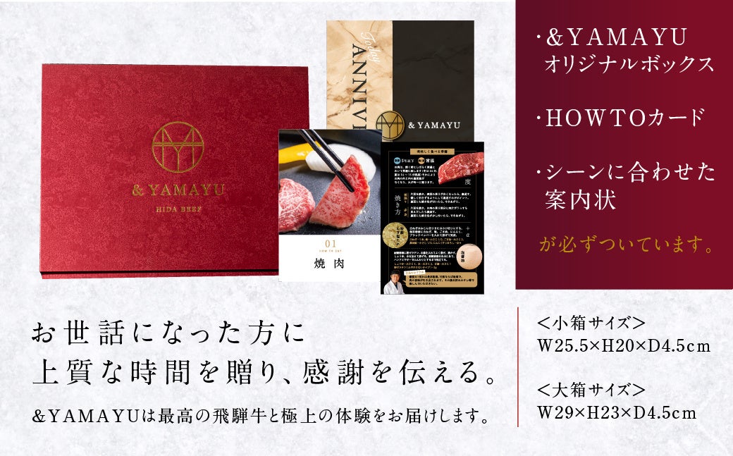 お客様に肉を選ばせるのではなく、お客様の飛騨牛を囲うシーン合わせて、肉を熟知している私達が最適な飛騨牛をセレクトし、最高の体験をプロデュースすることがお客様に寄り添うことであると考え、新たに『& YAMAYU』ブラントを設立しました。「飛騨牛をおいしく食べていただく」以上に「お肉を食べる時間をもっと楽しくしたい」という目的の元スタートしました。