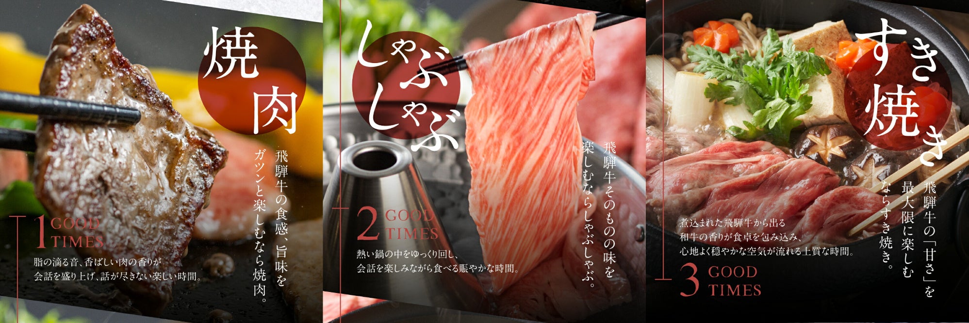 ③飛騨牛の霜降りと赤身の2種類をお届け。