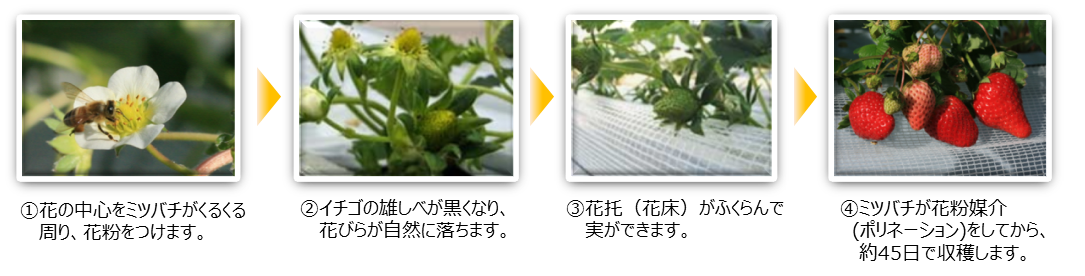 ■化学農薬不使用!ミツバチの花粉媒介(ポリネーション)で実ったイチゴ