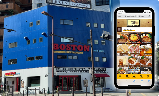 ボストンは大阪に7店舗を展開するハンバーグ専門店で、昭和27年に音楽喫茶として大阪阿倍野、昭和町に誕生しました。
