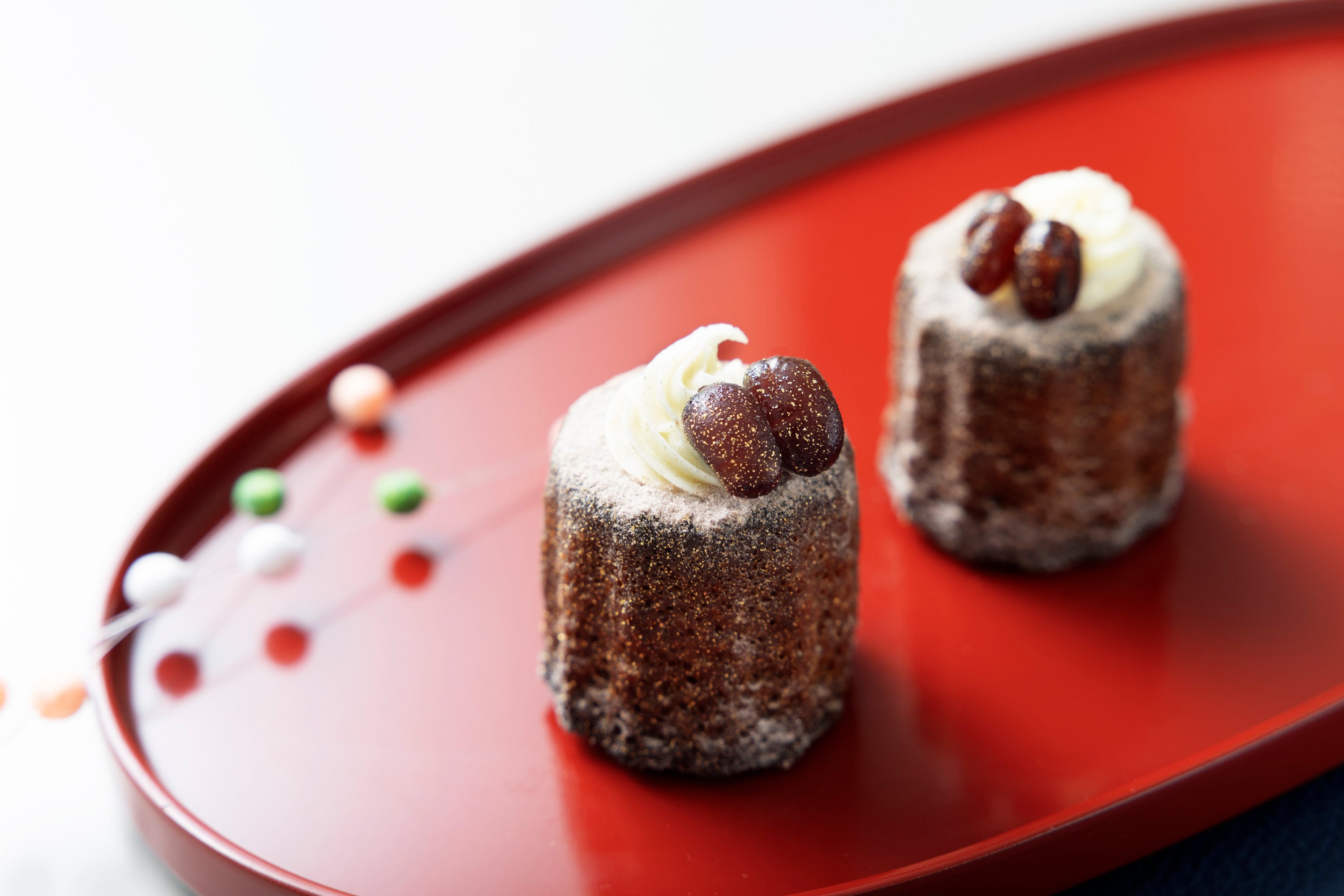 カヌレの一番上には、国産の大納言納豆に加えて金粉もあしらわれ、新年にふさわしい華やかな逸品です。