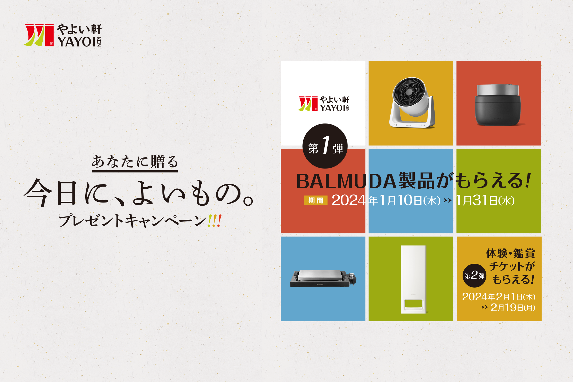 第 1 弾は BALMUDA 製品がもらえる! 2024 年 1 月 10 日(水)~1 月 31 日(水)