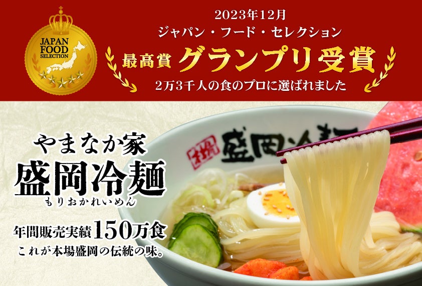 1986年の創業以来、守り続けてきた伝統の味「盛岡冷麺」は、最高級の北海道産でん粉を使用。独自の配合でブレンドしたコシの強い麺は、弾力のあるつるりとのど越しの良い麺。厳選された牛・豚・鶏を丹念に煮込み、すっきりとしたコクのあるスープに仕上げました。盛岡冷麺専用に作られたオリジナルのキムチは、スープに合うよう発酵調整し、辛味と酸味のバランスを追及したやまなか家盛岡冷麺専用のキムチを開発。「本物の盛岡冷麺を知っていただきたい、味わっていただきたい」という想いでつくりあげた本場盛岡冷麺です。
