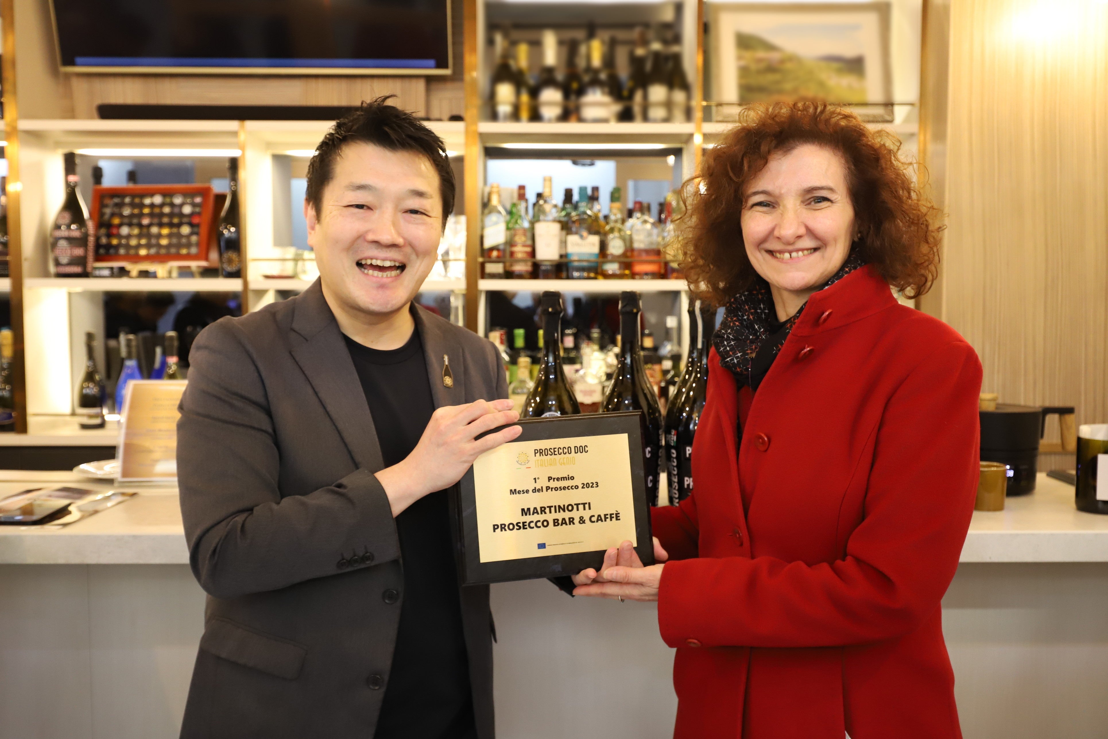 世界で最も多く飲まれているスパークリングワイン「プロセッコDOC」。今夏に行なわれたレストラン・小売優良店コンクール「Mese del Prosecco 2023」(プロセッコ月間 2023)の結果発表と表彰式が12月18日に行なわれ、2023年8月の1カ月間で314本を販売した「マルティノッティ プロセッコ バー&カフェ」(東京・日本橋。以下、マルティノッティ)が優良店・総合1位として表彰されました。コンクールにおける評価指標である「総販売本数」、商品ごとに異なる販売価格と本数を乗じた「販売金額」、店内席数による「販売効率」の3指標すべてにおいてマルティノッティは1位を記録。総合2位は「アンジェロコート東京」(東京・目白)、3位は小売店部門1位の「ENJI WINE CLUB」(神戸)が受賞しました。