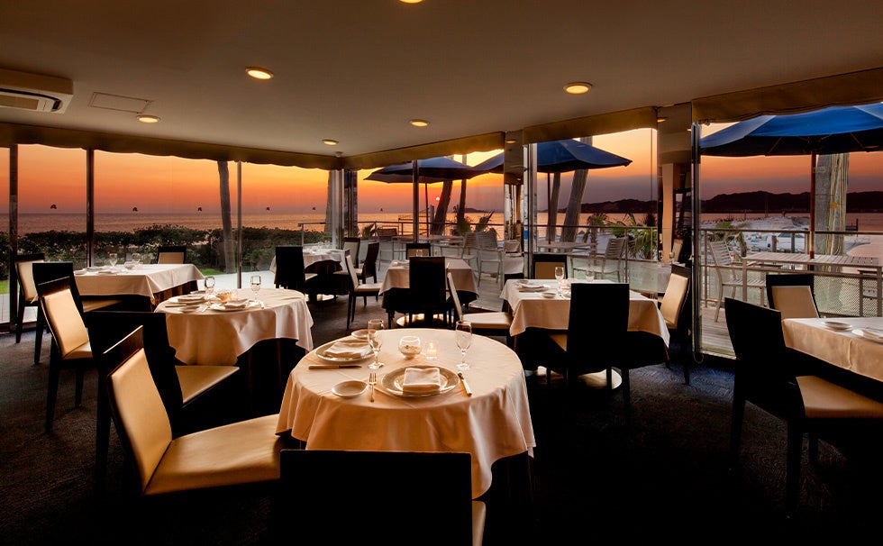 都心から約60分、鎌倉駅から10分のマリーナリゾート「リビエラ逗子マリーナ」の突端にあり、富士山と江の島を望む全席オーシャンビューを備え、「旬を味わう」がコンセプトのモダンイタリアンです。相模湾で水揚げされた魚介類をはじめ、循環型農法の地元契約農家が栽培する新鮮野菜、鎌倉野菜、希少な葉山牛など地産地消にこだわり、アラカルト、コース料理、本格窯の焼き立てピザに定評があります。イタリア本土のミシュラン星付きレストランで修業を積んだ新進気鋭のシェフ小川は、日本料理から料理人を始めた経験から、旬を感じる料理をコンセプトに毎月新メニューを考案し、普段のお食事から記念日使いにも相応しい洗練された空間と料理を提供します。「葉山牛指定飲食店」に指定され葉山牛が食べられる15店のうちの一つです。