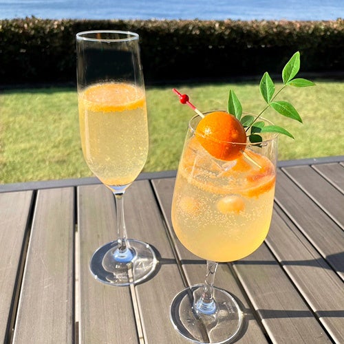 フルーティーな柚子茶とグレープフルーツに、スパークリングワインを合わせたフルーティーでさわやかな味わいのカクテル。ノンアルコールには、金柑と南天の葉を飾り、見た目も華やかに、炭酸によるシュワシュワ感もお楽しみいただけます。