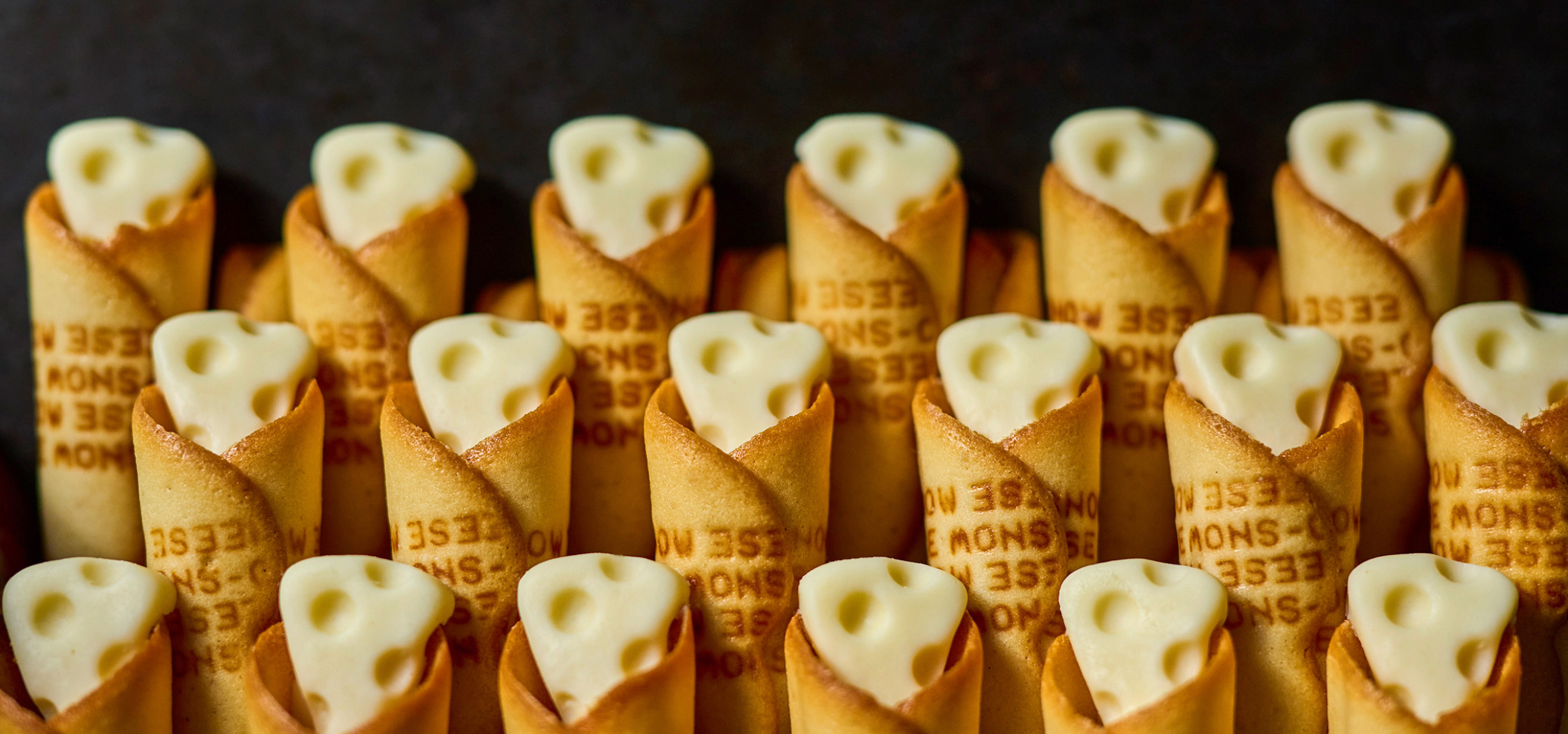 チーズの美味しさを凝縮した生食感のチョコレートを香ばしいサクサクの生地で包みました。