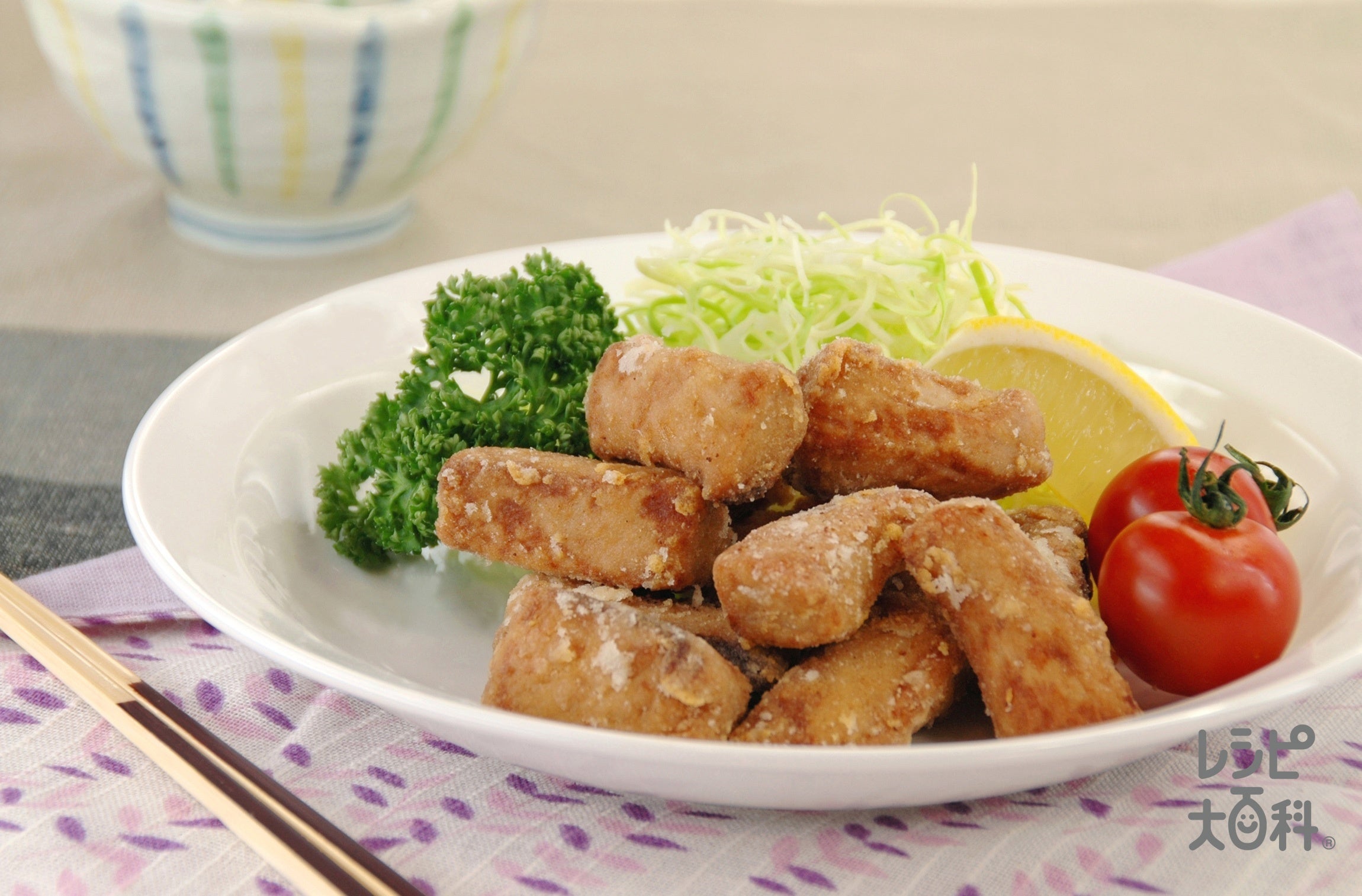 ② ①のかつおに片栗粉をまぶし、175℃に熱した油で、揚げる。