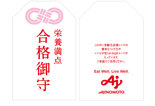 人・社会・地域のWell-beingへの貢献を目指す中で、体調管理が大切な受験シーズンに、栄養満点の食事を通じて少しでも受験生と受験生を応援する方々をサポートしたいという願いを込め、栄養満点かつゲンを担いだ料理のレシピが入った「合格御守」が貼られた「栄養満点ポスター」を掲示します。「合格御守」はご自由にお持ち帰りいただけます。
