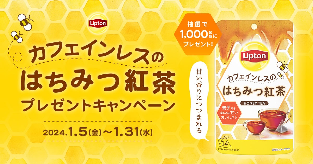本キャンペーンでは、キャンペーン期間中に簡単なアンケートにお答えいただいた方の中から、抽選で1,000名様にリプトンの「カフェインレスのはちみつ紅茶」ティーバッグ14袋入りをプレゼントいたします。