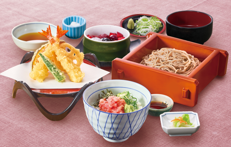 朝食には「新しい一日が始まる前に、朝そば」を、昼食には「選ぶ楽しさが広がる!お好みの麺、天ぷら、おにぎりが彩る、セルフスタイル形式」や「大忙しの医療従事者や学生も安心!ボリュームたっぷり丼物」を、ブランチには「こころほどけるひとときに甘味やコーヒー」を、夕食には「厳選素材を使用したおいしさにこだわった定食」など、彩り豊かな商品を提供いたします。