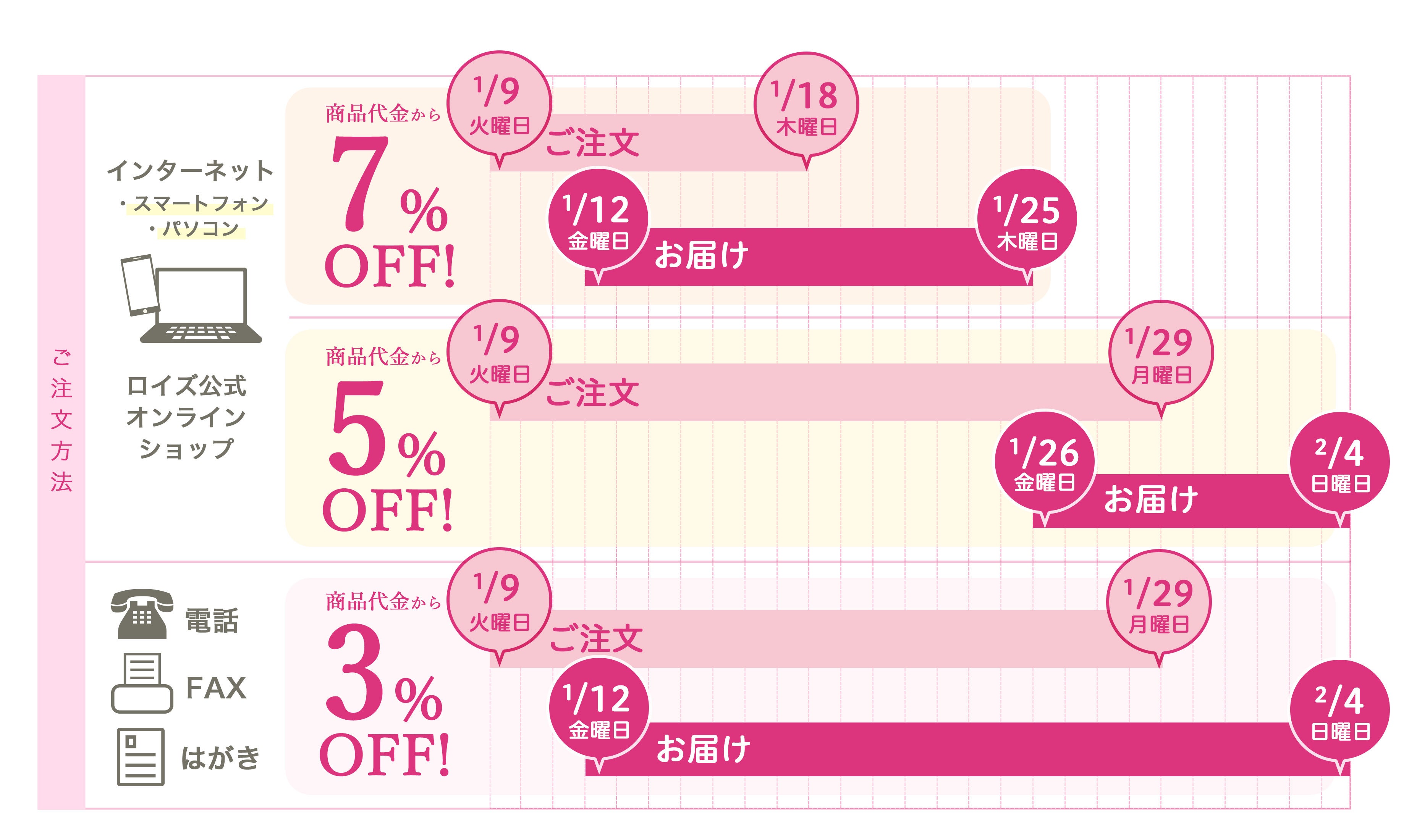 この時期お電話でのご注文は大変混み合いますので、ぜひよりお得な公式オンラインショップをご利用ください。