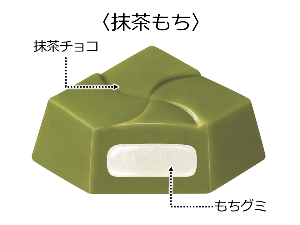 もちグミを宇治抹茶100%使用の抹茶チョコで包みました。