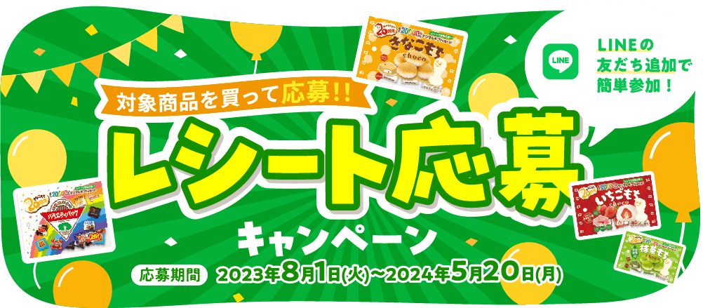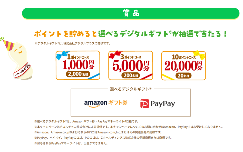 対象商品を購入したレシートを撮影して、チロルチョコ LINE公式アカウントから応募!抽選で総勢2,220名様に最大20,000円のギフト券をプレゼント。
