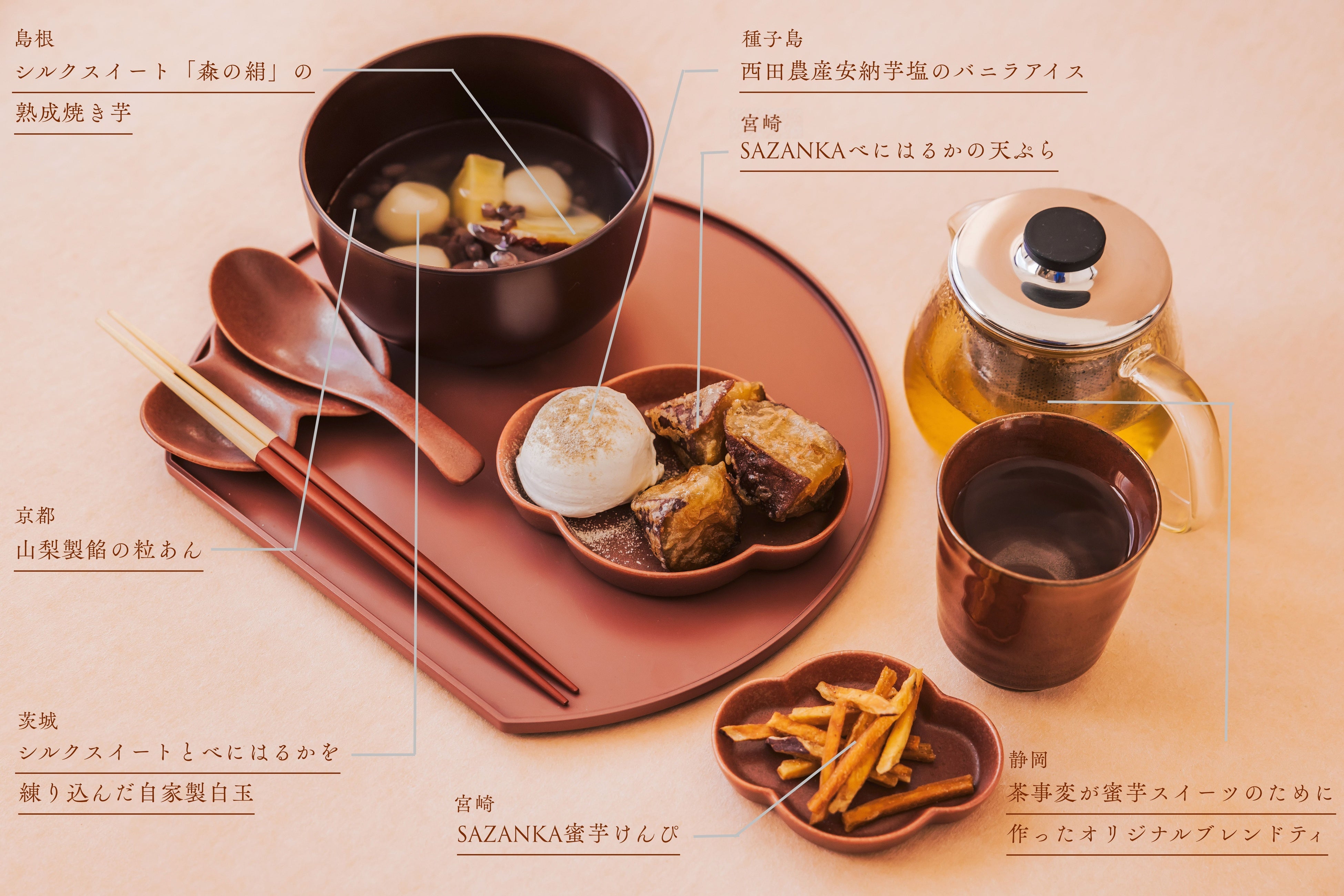 『蜜芋尽くしの焼き芋ぜんざい 〜特製お茶、お茶請け付〜』 2,480円 (税込)