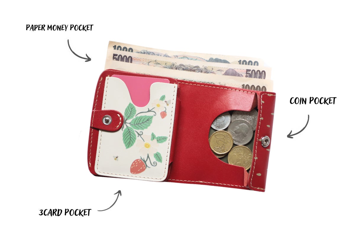 中のポケットにもいちごをデザインした、いちご好きのためのお財布です!