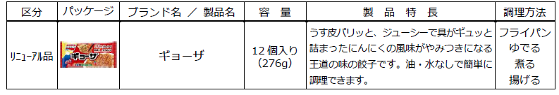 このたび、調理時のフライパンからの剥離性を改善することで、より張りつきにくく、失敗なく、誰でもパリッとした羽根つきギョーザが焼けるようにリニューアルします。ギョーザを食べるときだけでなく、ギョーザを焼く時も最高に楽しくなります。「おいしさ」、「楽しさ」や「簡便性」はもちろん、パリッとジューシーな羽根つきギョーザが焼きあがった時の「感動」をさらに多くの生活者の皆さまに実感いただけるようになりました。