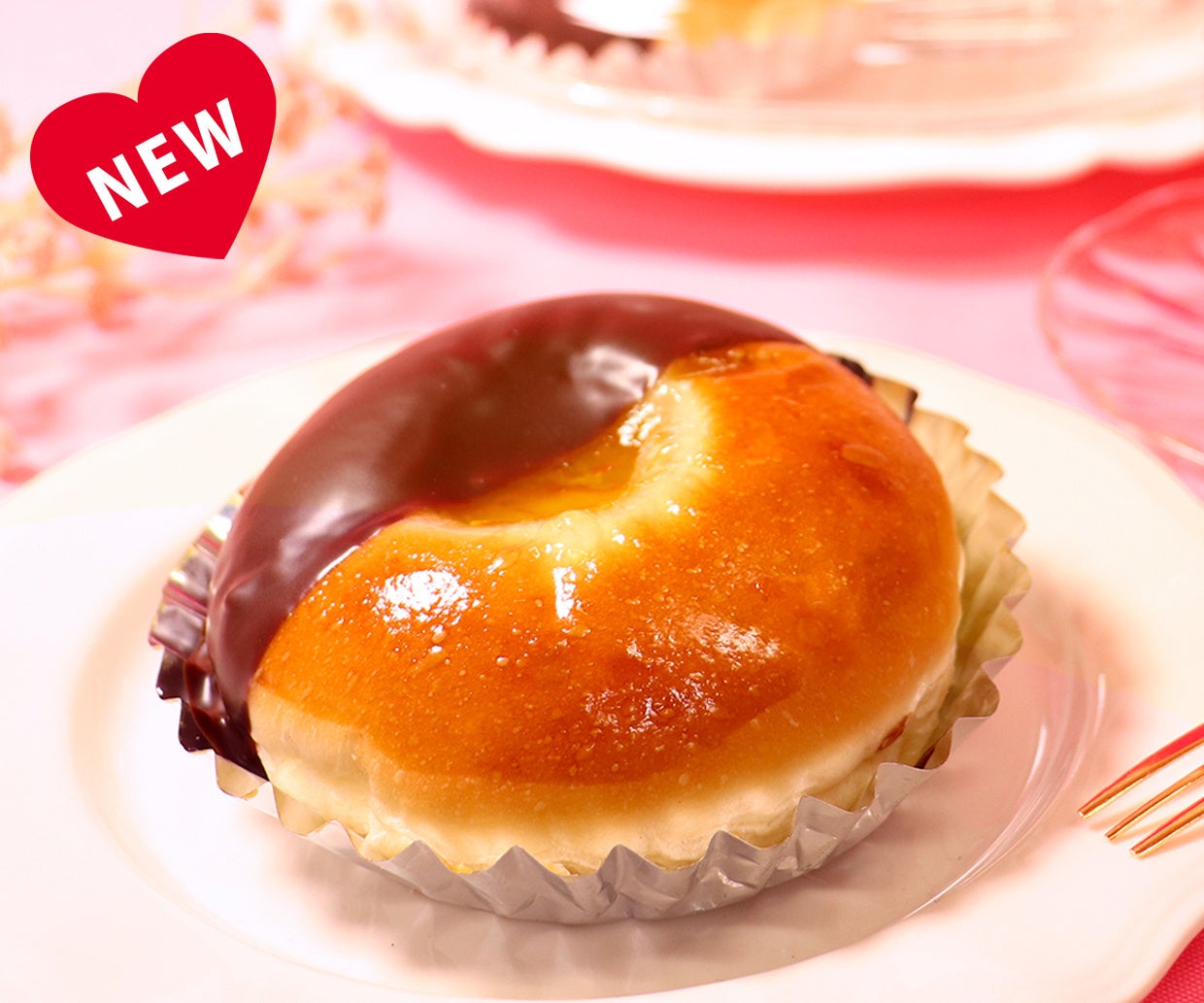 商品特徴:スイートなハートの生地の中にチョコレートクリームを包み、さらにチョコレートでコーティング。アーモンドとラズベリーフレークを添えた甘酸っぱい香り漂うショコラパンです。