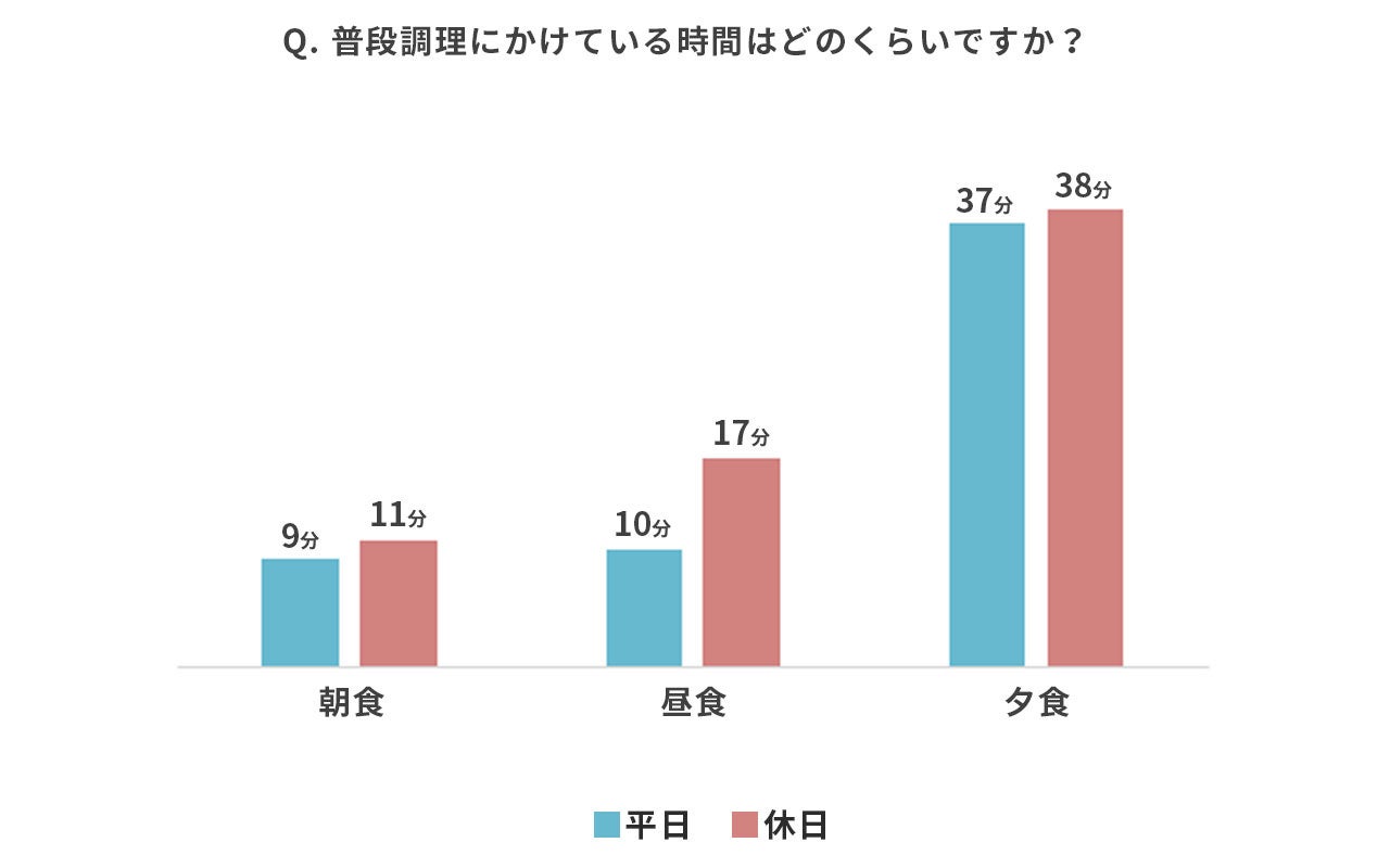 →“時短”だと思う調理時間は平均17分。朝昼は時間内に収まっているが、
