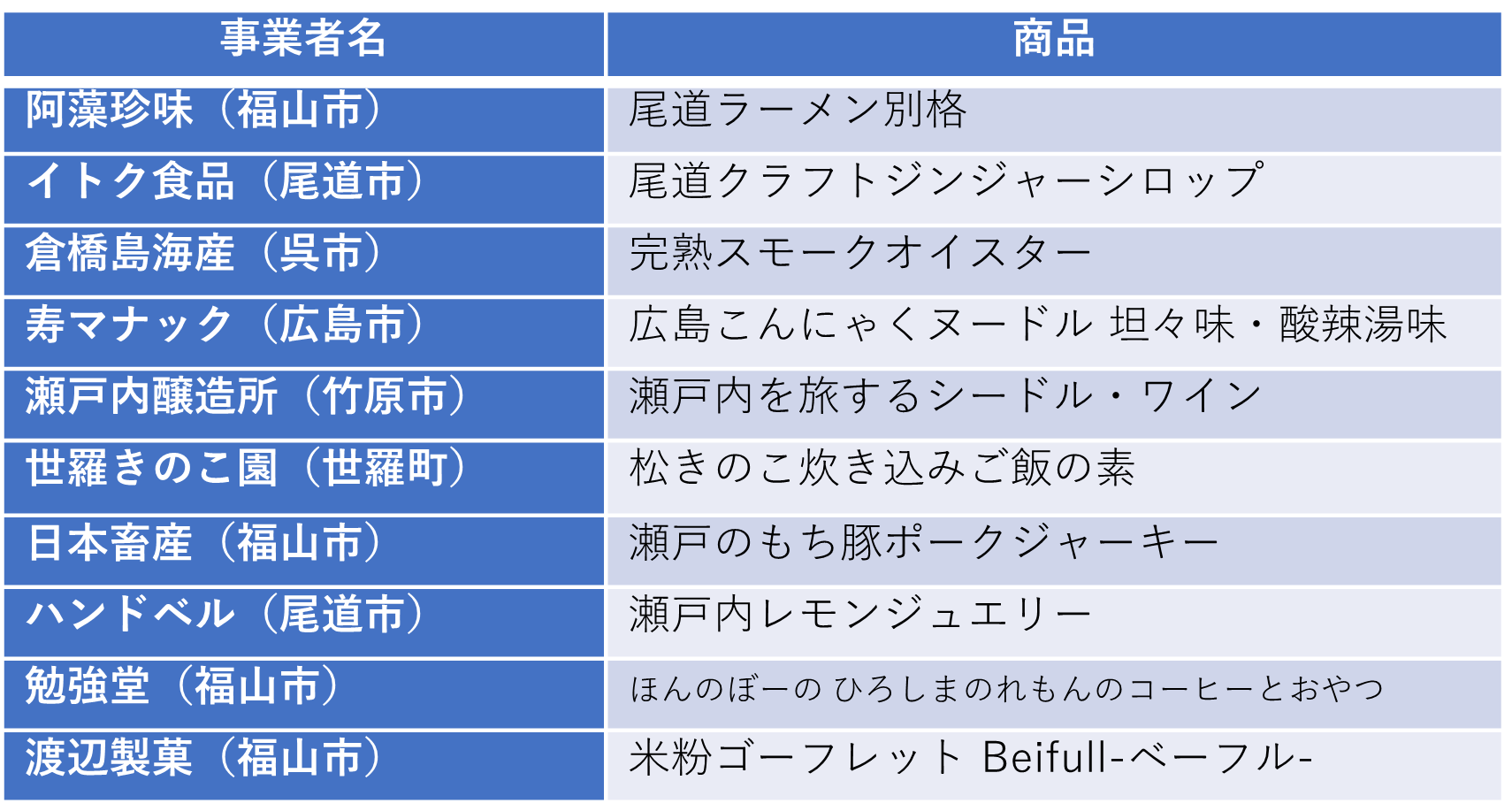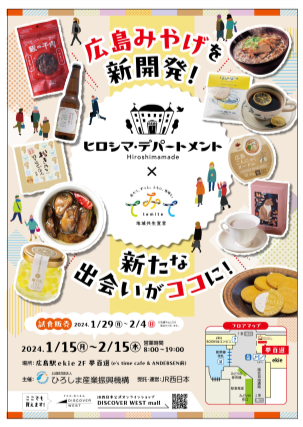 このたび、広島駅ekie2F「夢百選」にて特設ブースを設置し、本事業で開発した新商品の期間限定販売を行います。同時にJR西日本地域産品オンラインショップ「DISCOVER WEST mall(ディスカバーウエストモール)」でも特設ページを設定し販売を行います。