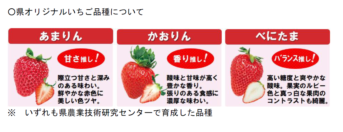 埼玉県では、現在本格的ないちごのシーズンを迎えており、人気の県オリジナルいちご品種「あまりん」「かおりん」に加え、新品種「べにたま」も販売中です。