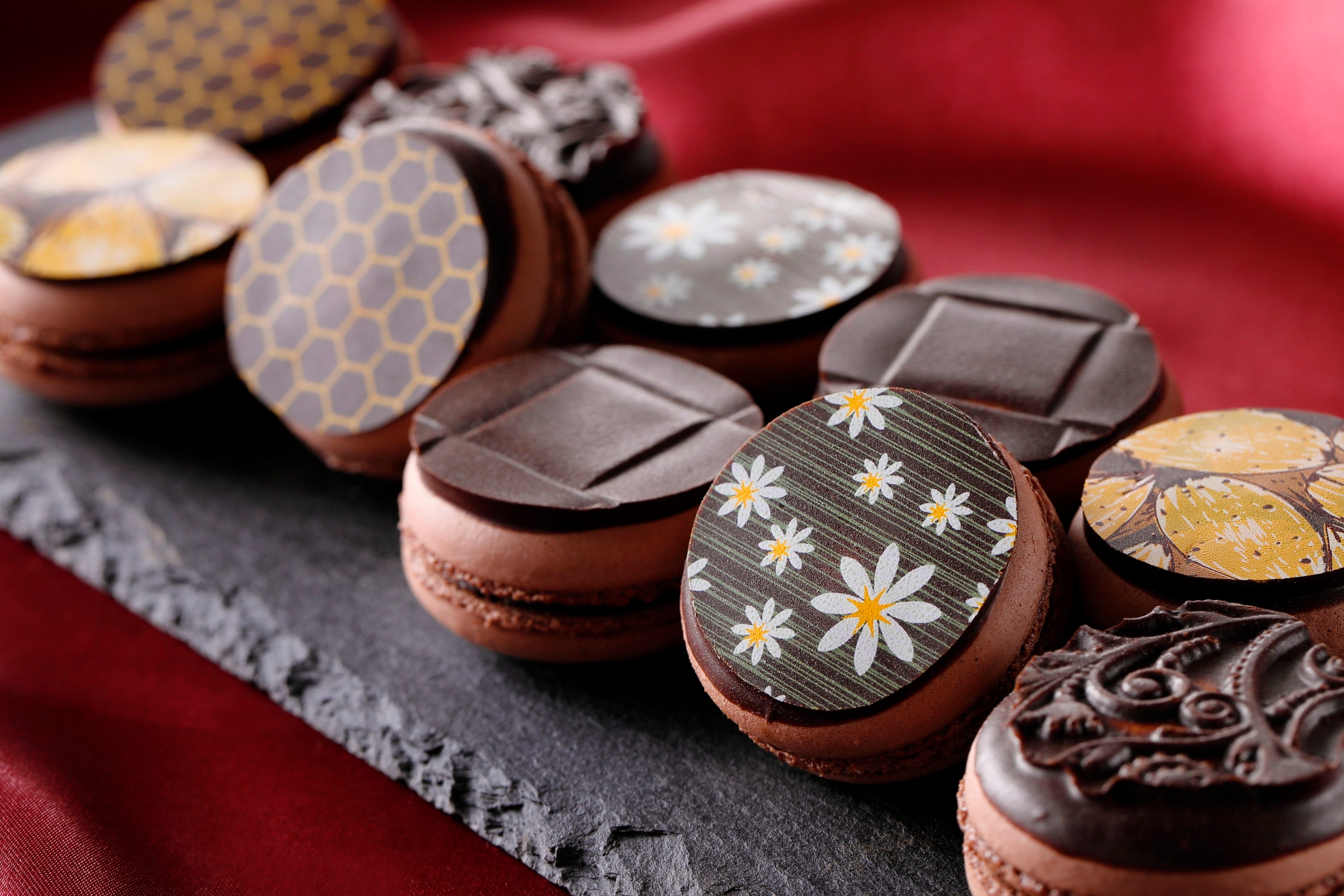 片面をチョコレートでパリッとコーティングしたバレンタイン限定のマカロンショコラ。キャラメルガナッシュとプレーンガナッシュの2種類の味を楽しめます。