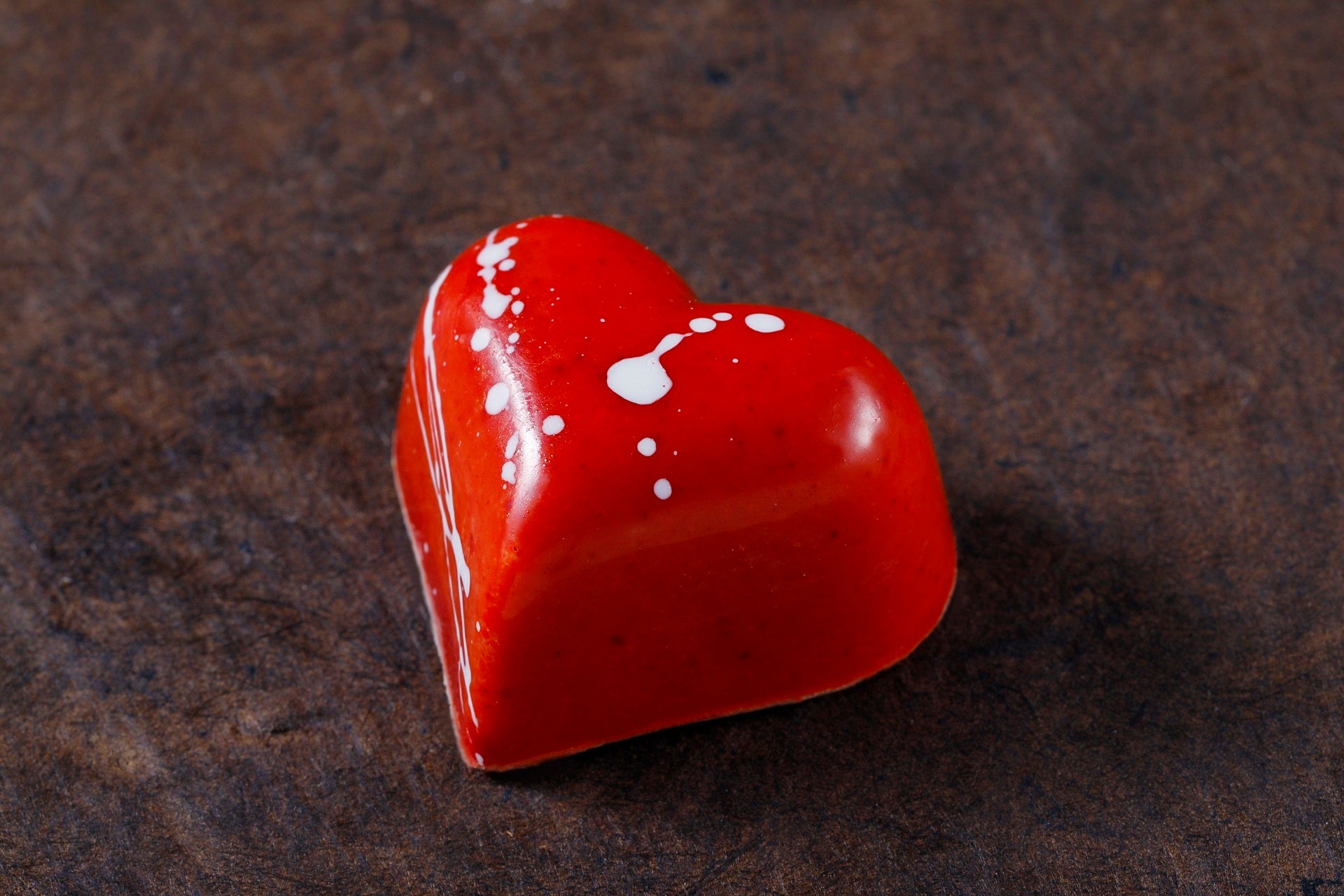 香ばしくコクのあるピスタチオの風味とストロベリーの甘酸っぱさが際立つハート型で色合いも鮮やかなショコラ