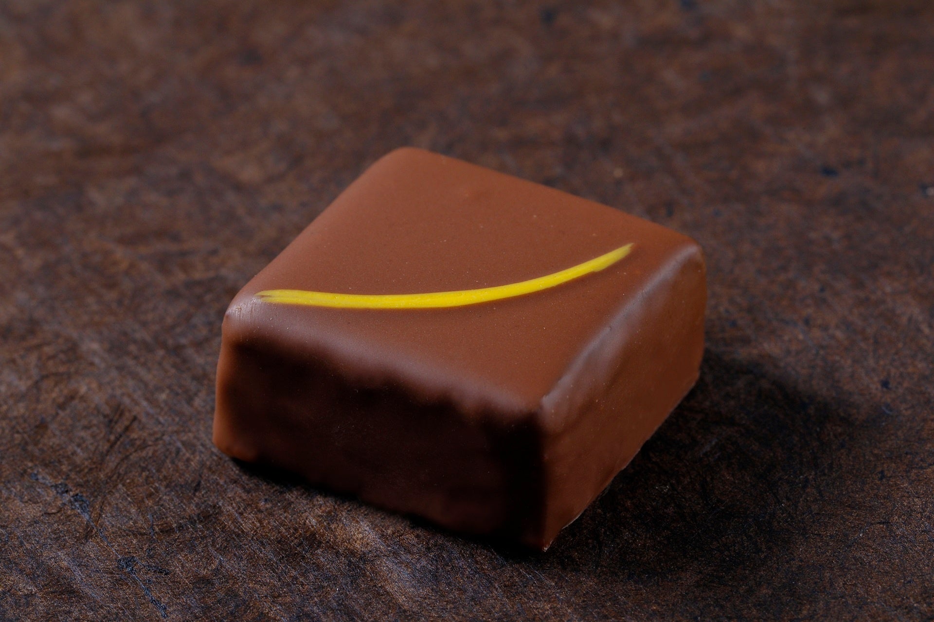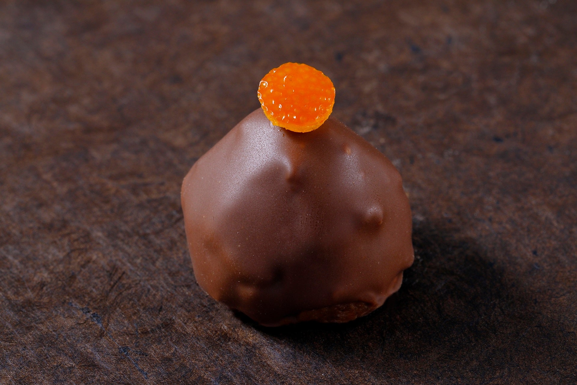 ヘーゼルナッツの香ばしい風味と控えめの甘さがオレンジの酸味と見事に融合したショコラ