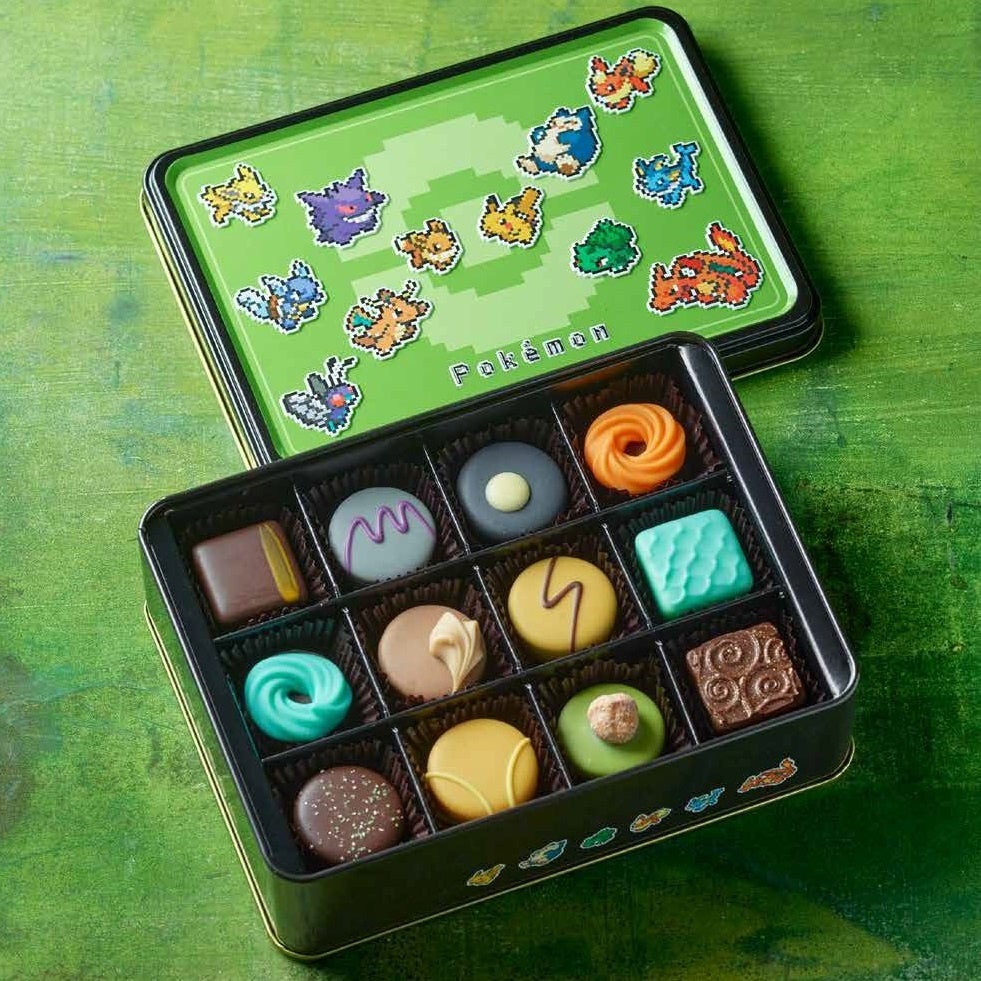 ゲンガーのあたまやカビゴンの体色などをモチーフにしたチョコレート12種類を詰め合わせた、遊び心満載のよくばりアソートボックス。[通期]