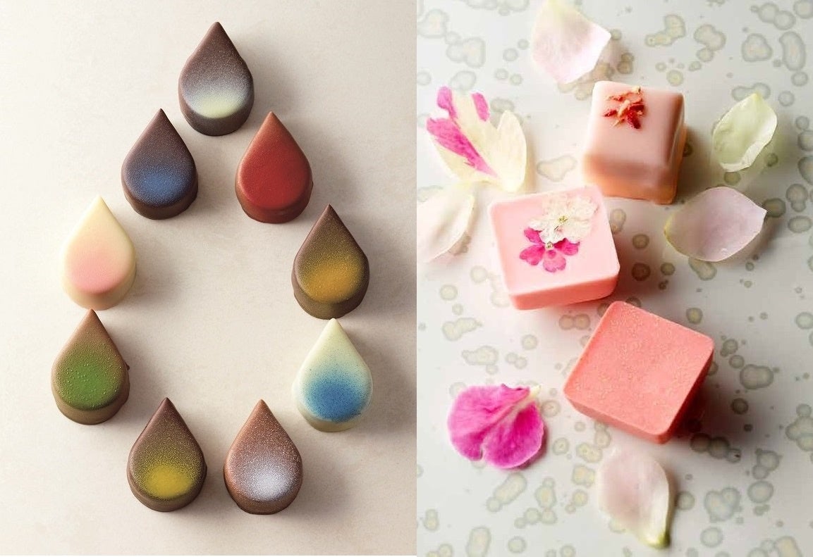 (左)シェ・シバタ/アロマ [9個入] 4,536円 国内外で展開する、東海エリアが誇るパティスリー。個性豊かなハーブとフルーツを合わせた、華やかなボンボン。[後半]