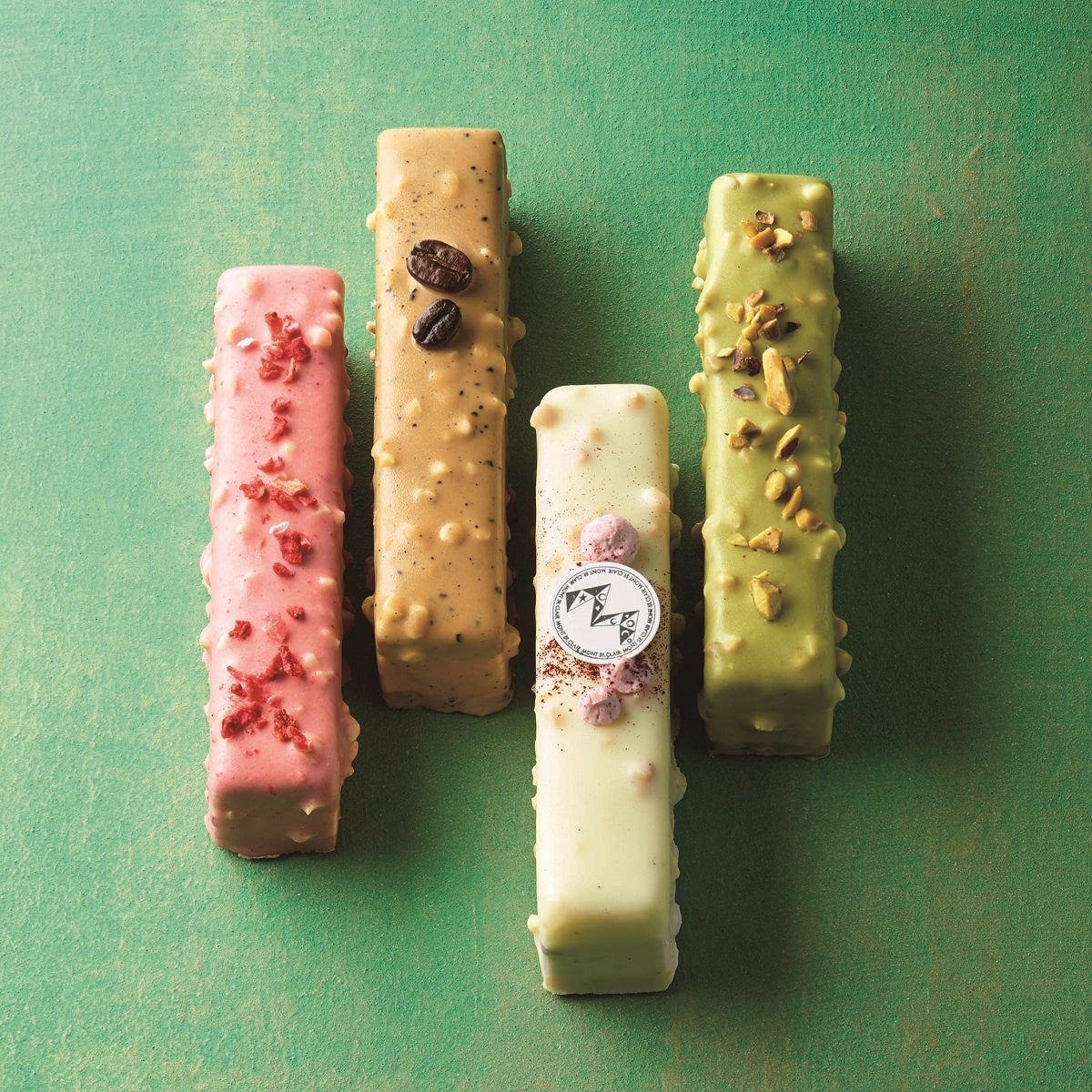 モンサンクレール/バール ドゥ ショコラ[4本入] 3,780円 タイベリーやシトロンなど、カカオによく合うフルーツを用いた華やかなショコラバー。異なる食感の層を重ねて。