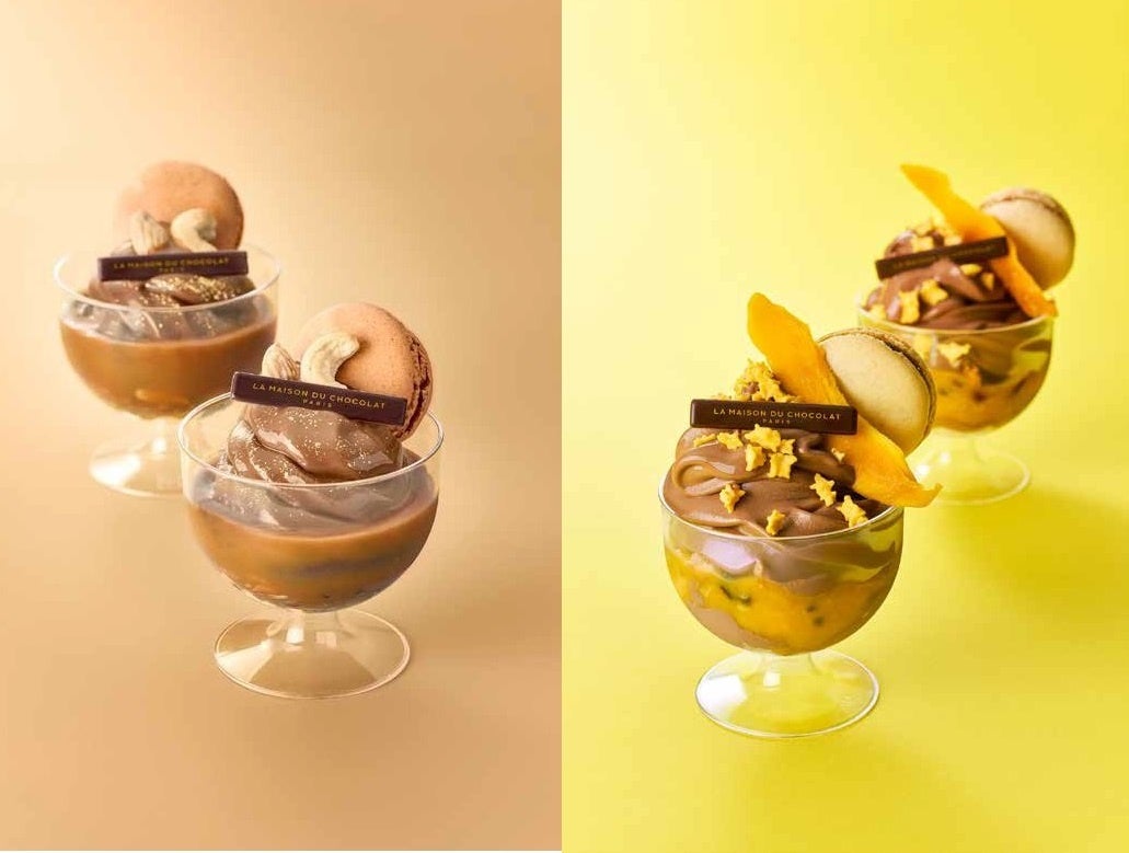(右)ラ・メゾン・デュ・ショコラ/ミニパフェ ソフト エキゾティック[1個]1,210円 フルーツの甘酸っぱさと濃厚なショコラソフトがマッチ。[通期]