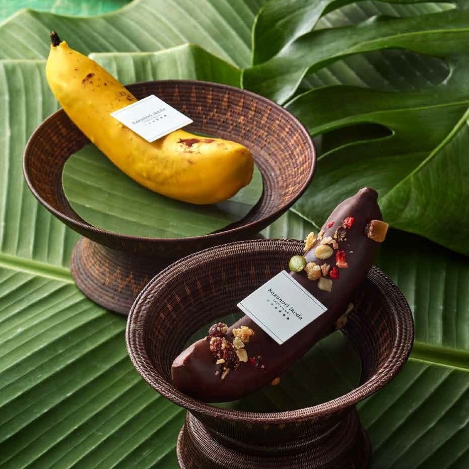 カズノリ イケダ アンディヴィデュエル/KOREGA BANANA?[ビターショコラ・フルーツショコラ、1本] 各601円 バナナにこだわりのショコラをまとわせて。奥深いビターと、ホワイトチョコをブレンドしたフルーツショコラ。[後半]※各日限定各60本