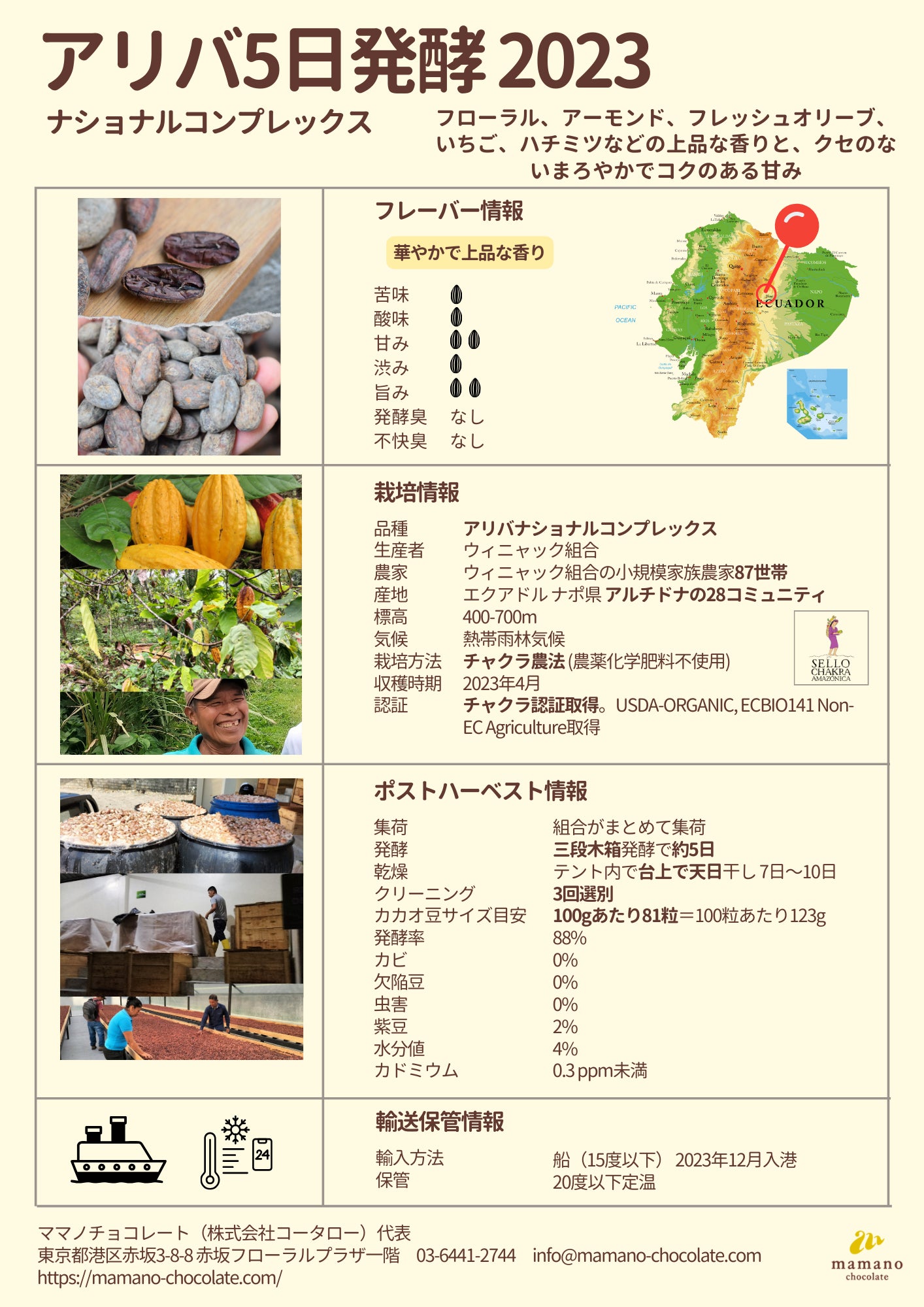 東京・赤坂に拠点を置くママノチョコレート(株式会社コータロー/代表取締役 江沢孝太朗/港区)は、エクアドルアマゾン原産アリバカカオ豆2023の販売を開始いたしました。