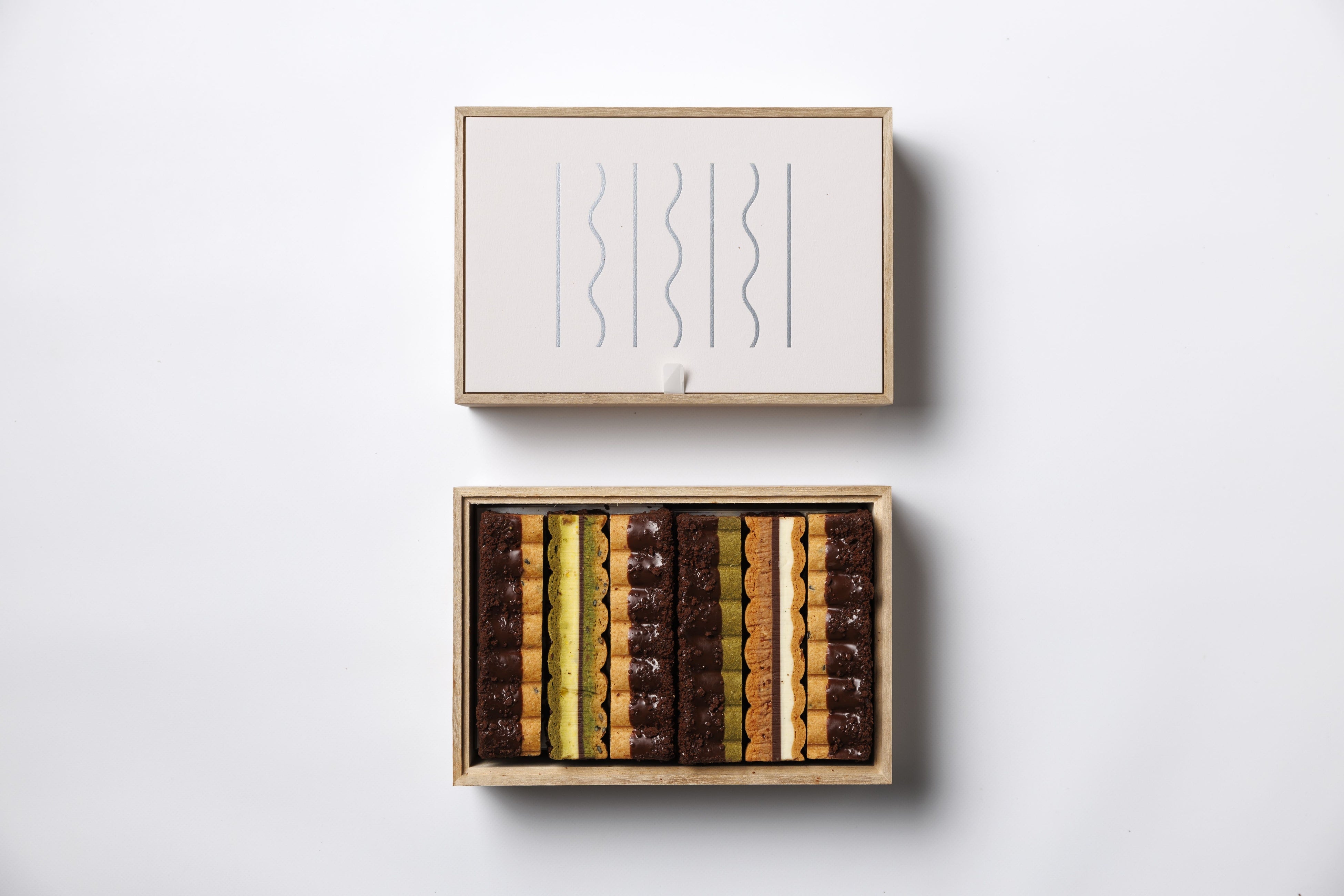 Nami-Namiのフレーバーの中から、プラリネ・濃茶・柚子抹茶の3種を選び、こだわりのチョコレートをコーティングしたクリームサンドサブレ。