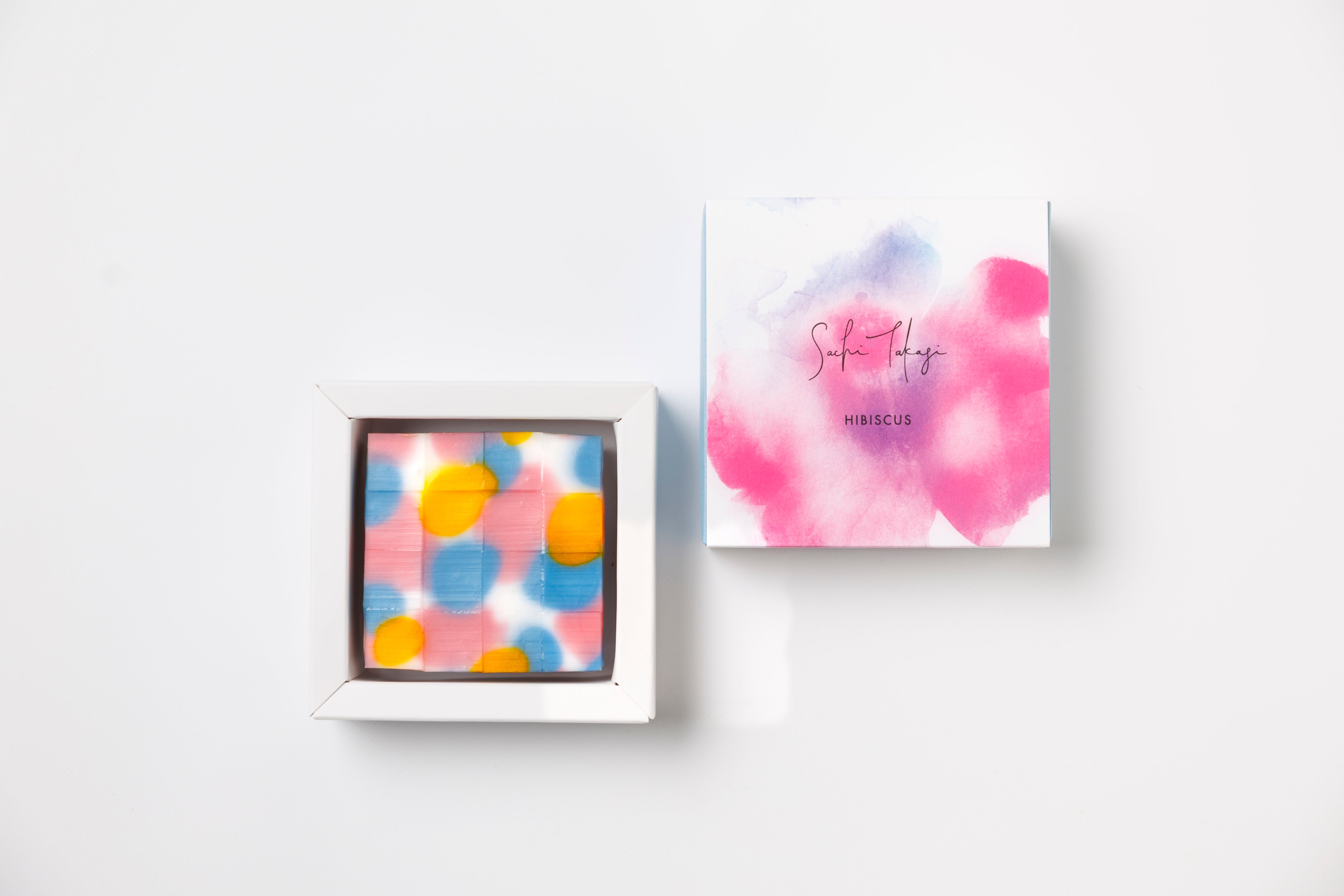 独創性あふれるアートのような華やかなチョコレートはプラントベース(植物性)の材料で作られる瑞々しい生チョコレート。植物を包み込む自然界をイメージした色鮮やかな見た目と、カカオ豆から作り上げるコスタリカ産のビーントゥバーチョコレートを使用した植物の力強さや、素材の風味をダイレクトに感じられる味わいが特徴です。