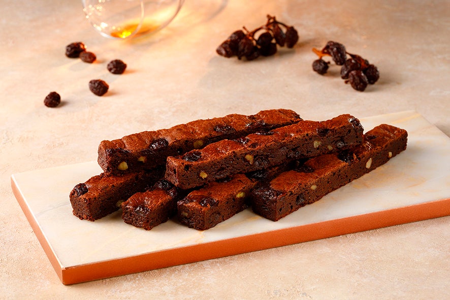 3種類の厳選したクーベルチュールチョコレートを使用した生地に、太陽の光で乾燥させたレーズンを使ったラムレーズン、そしてアクセントにクルミを加えて仕上げました。しっとりとした食感とラムレーズンの奥深い味わいは、バレンタイン・ホワイトデー期間にぴったりの逸品です。