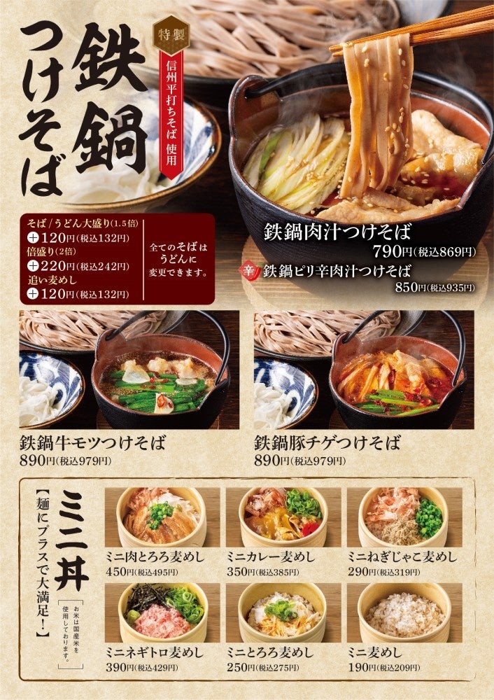 アークランドサービスホールディングス株式会社の子会社、「肉めし岡もと」などを運営する株式会社トビラダイニング(本社:東京都千代田区/代表:大内 勇一)は、とろろそば専門店「東京とろろそば」全店にて、冬に食べたくなる「鉄鍋つけそばシリーズ」の新作「牛みぞれ鍋つけそば」を2024年1月17日(水)より期間限定で販売開始いたします。