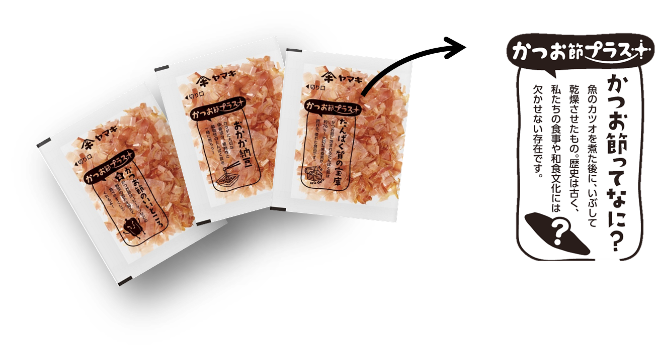 ヤマキは、「鰹節屋・だし屋、ヤマキ。」として鰹節とだしを通じて、「おいしさ」と「健康」、